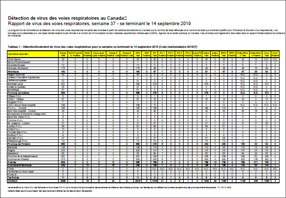 Rapport de virus des voies respiratoires, semaine 37 : se terminant le 14 septembre 2019