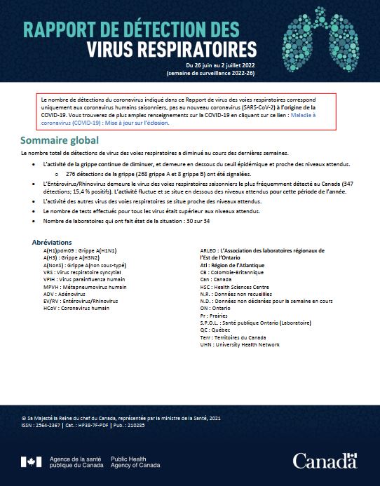 Rapport de virus des voies respiratoires, semaine 26 : se terminant le 2 juillet 2022