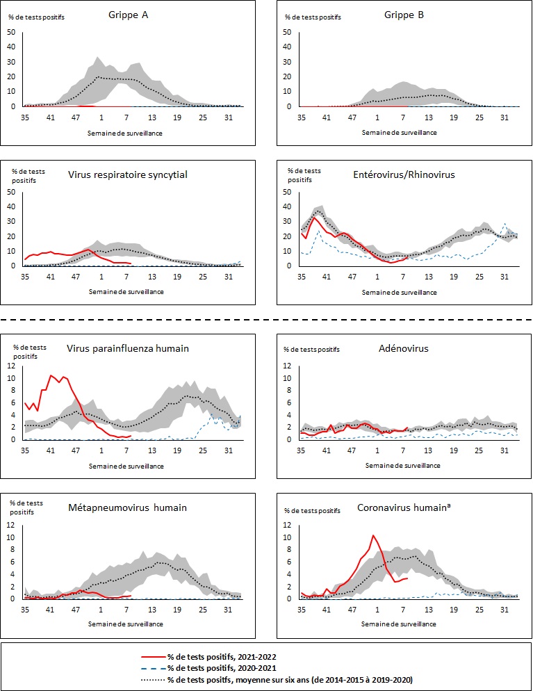 - Comparaison historique des tests positifs pour les virus respiratoires