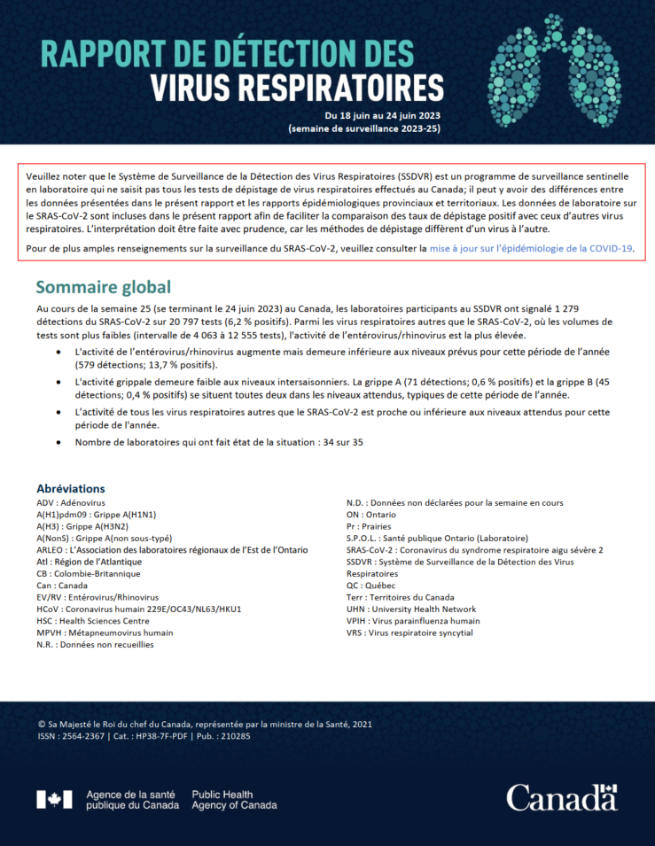 Rapport de virus des voies respiratoires, semaine 25 : se terminant le 24 juin 2023