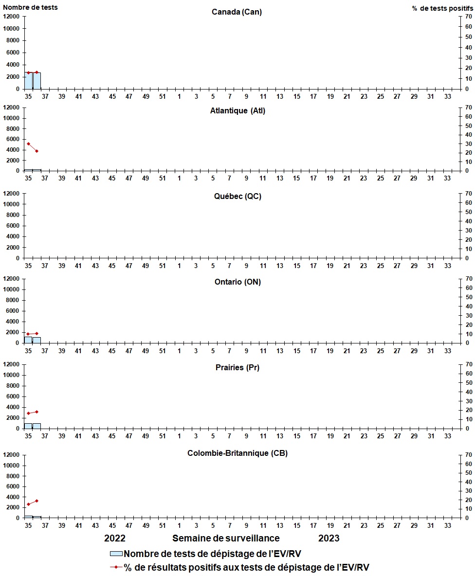 | Semaine | Fin de la semaine | Can Tests | EV/RV% | Atl Tests | EV/RV% | QC Tests | EV/RV% | ON Tests | EV/RV% | Pr Tests | EV/RV% | CB Tests | EV/RV% |