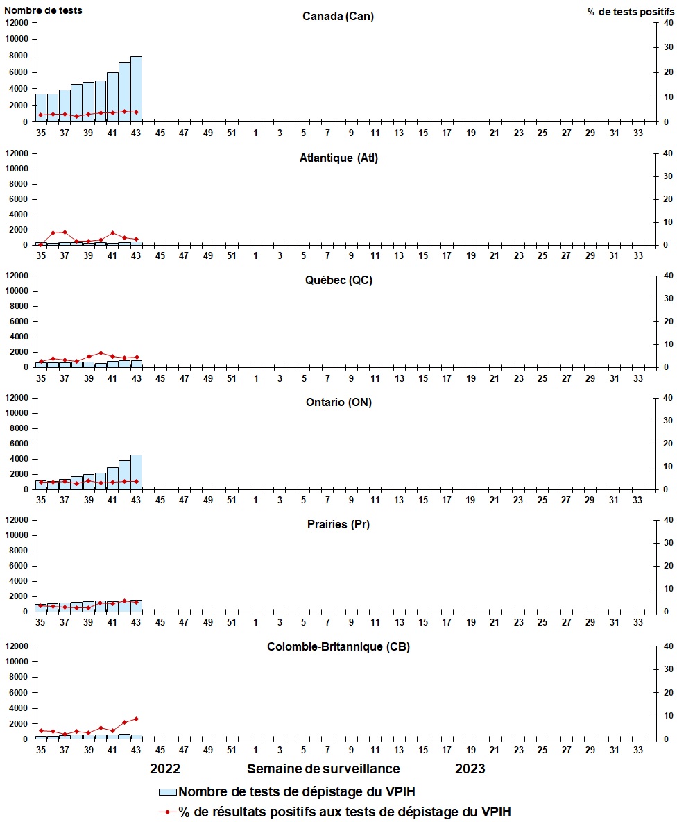 | Semaine | Fin de la semaine | Can Tests | MPVH% | Atl Tests | MPVH% | QC Tests | MPVH% | ON Tests | MPVH% | Pr Tests | MPVH% | CB Tests | MPVH% |