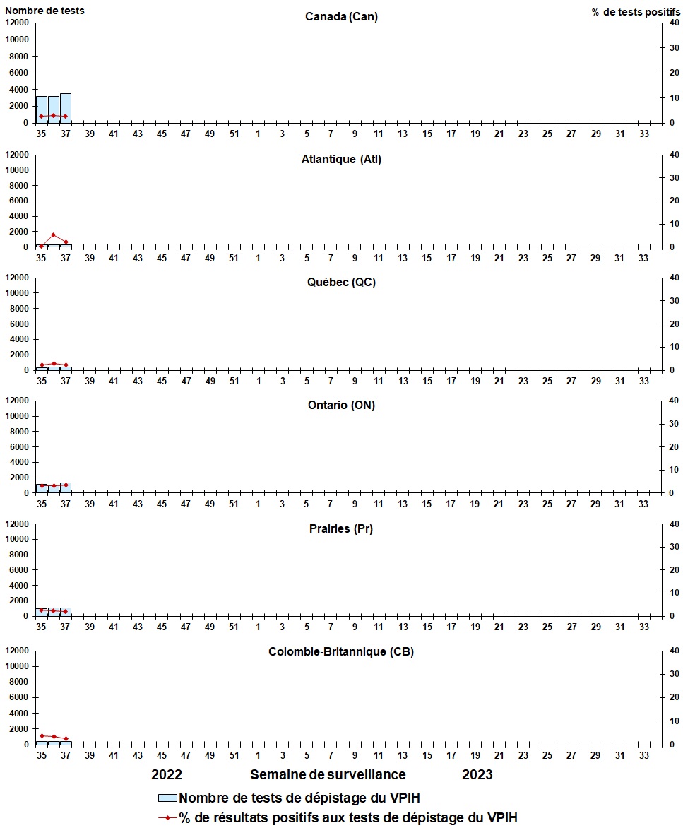 | Semaine | Fin de la semaine | Can Tests | MPVH% | Atl Tests | MPVH% | QC Tests | MPVH% | ON Tests | MPVH% | Pr Tests | MPVH% | CB Tests | MPVH% |
