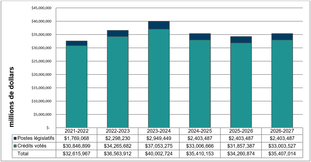 | Responsabilités essentielles et services internes | ETP prévus en 2024‑2025 | ETP prévus en 2025‑2026 | ETP prévus en 2026‑2027 |