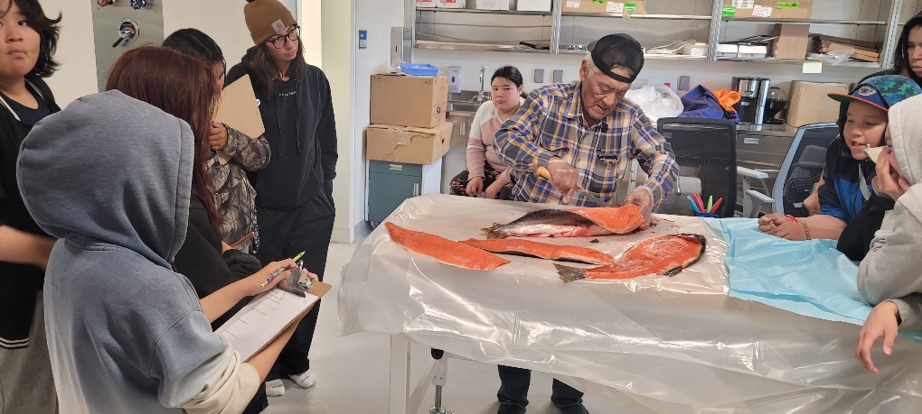 - Changement climatique – L’atelier sur le changement climatique, élaboré en partenariat avec le Conseil tribal des Gwich’in, s’est tenu au camp de bien-être du fleuve Mackenzie, au sud d’Inuvik, du 19 au 22 mars 2024. Savoir polaire Canada a participé à cet atelier thématique, qui a rassemblé des détenteurs du savoir gwich’in, des Aînés, des jeunes, des biologistes gwich’in et des chercheurs universitaires, et en a assuré le financement. Les conférenciers principaux ont été parrainés par Savoir polaire Canada pour partager leurs connaissances sur les méga-incendies des Territoires du Nord-Ouest et l’écologie forestière en période de changement climatique, l’accès aux routes d’hiver et les problèmes de transport pour les collectivités de la région désignée des Gwich’in dans le contexte des périodes de gel de plus en plus courtes et de moins en moins stables, et la recherche pour soutenir l’atténuation et l’adaptation des collectivités.
