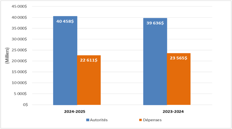 Tel que reflété à l’état des autorisations (Annexe 1), pour la période se terminant le 31 décembre 2024, le total des autorisations budgétaires disponibles pour utilisation a augmenté de 0,82 millions de dollars (2,1 %) pour l'exercice en cours par rapport à l'exercice précédent.