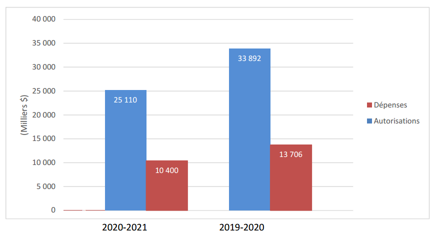 Pour la période se terminant le 30 septembre 2020, les autorisations budgétaires annuelles de POLAIRE totalisaient 25,1 millions de dollars. Le tableau 1 ci‐dessous présente les autorisations budgétaires et les dépenses pour les deux premiers trimestres de 2020‐2021 et 2019‐2020. L’État des autorisations donne plus de détails