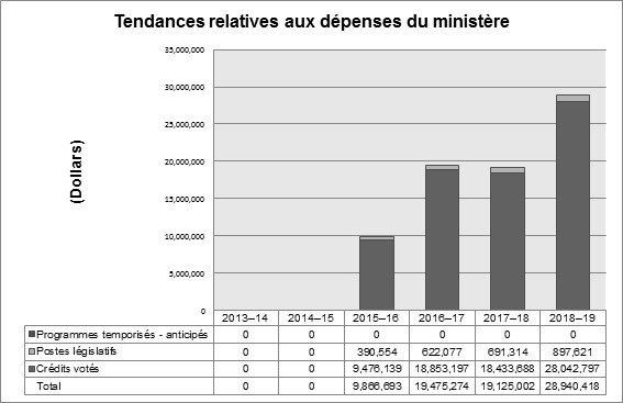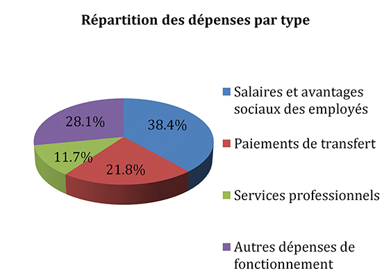 En 2015-2016, le montant total des dépenses réelles s’est élevé à 8 286 711$; cela englobe quelque 28 équivalents temps plein (ETP).