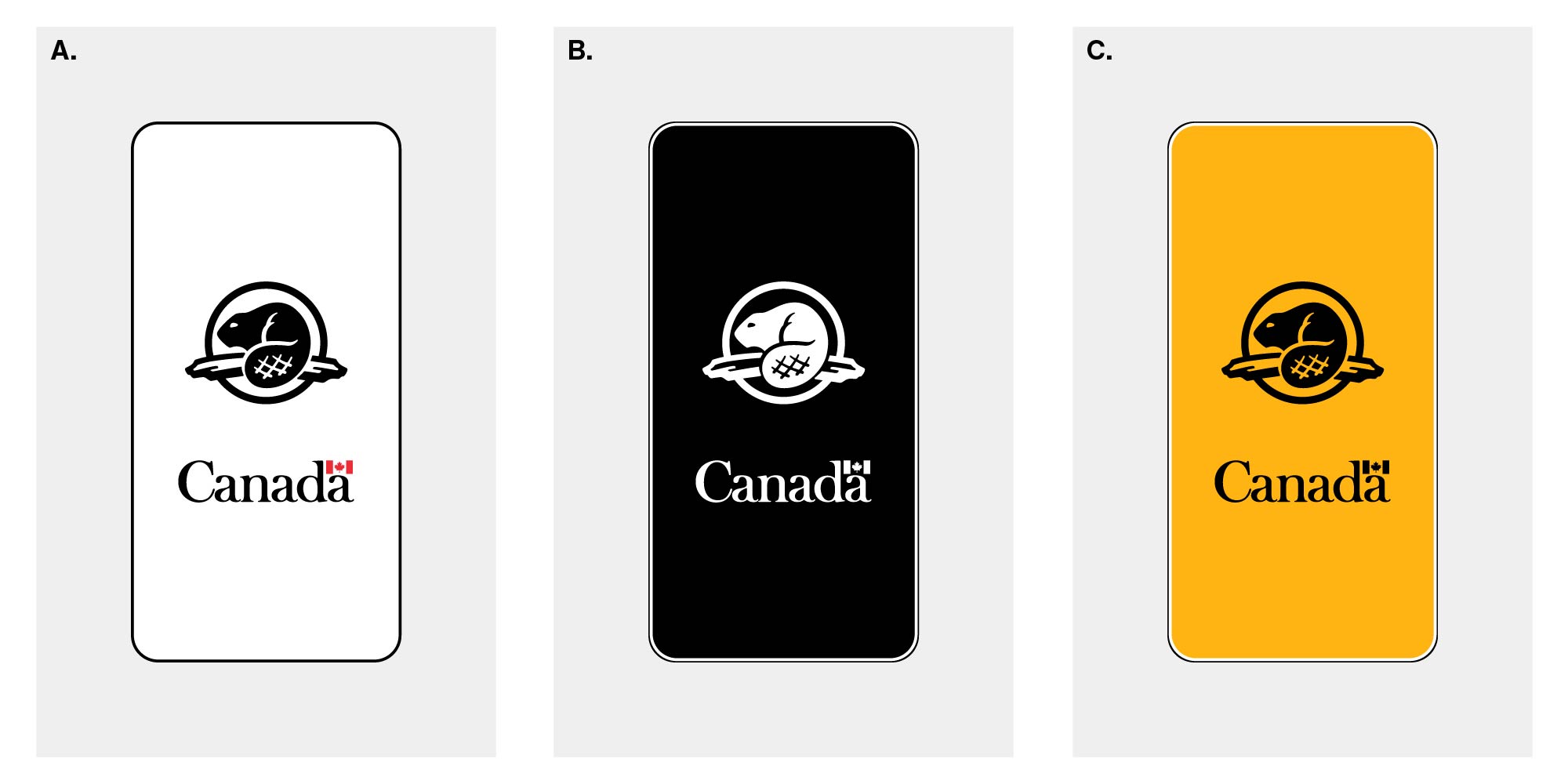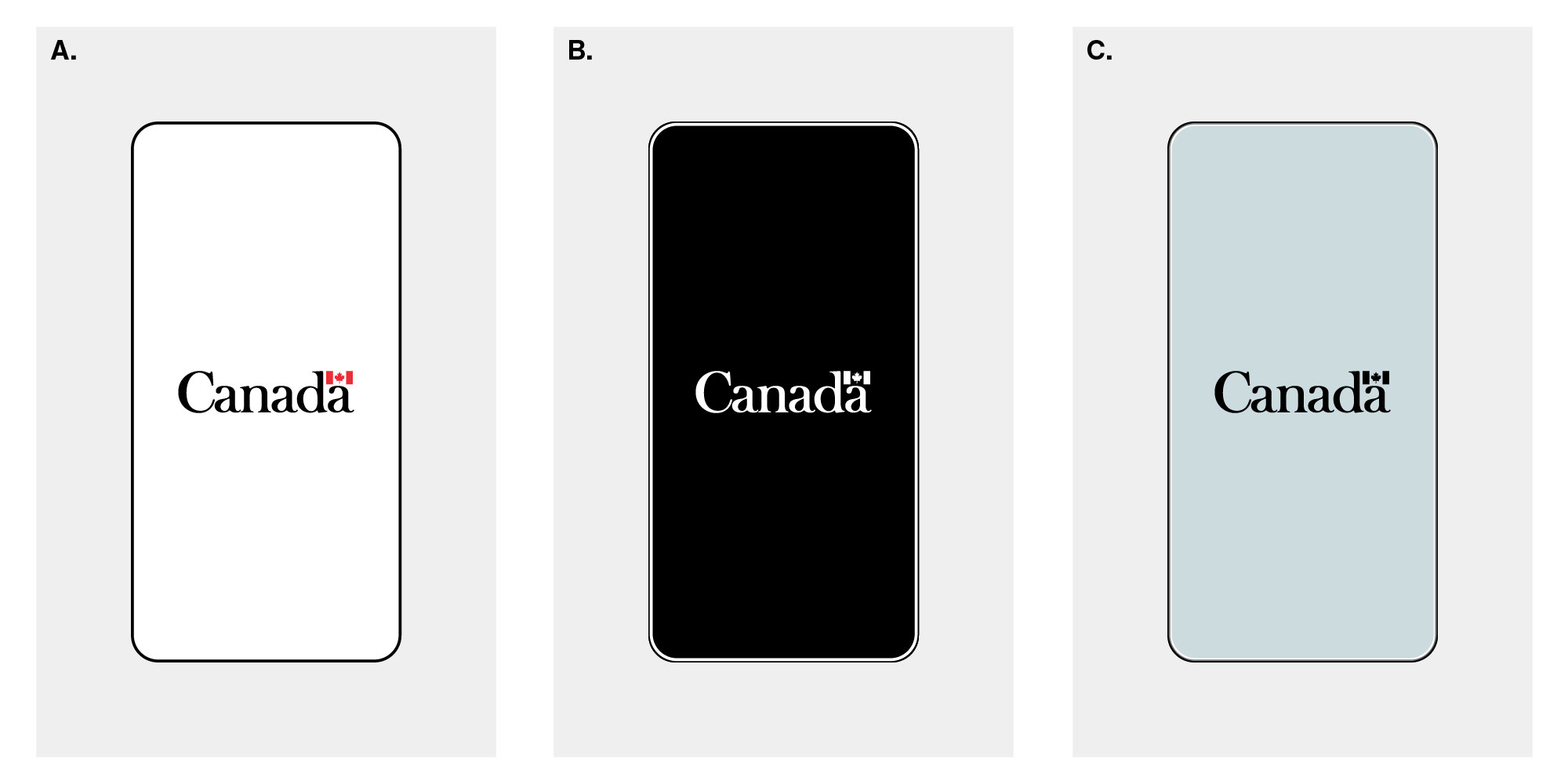 Figure 3. Taille et disposition du mot-symbole « Canada » sur les écrans de démarrage qui affichent uniquement le mot-symbole