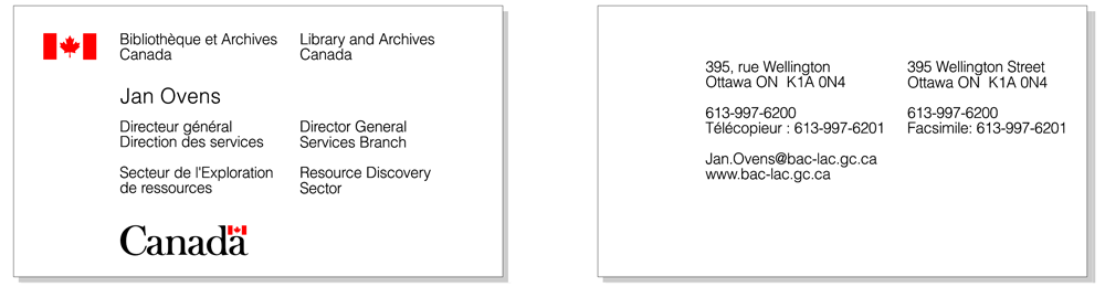 - L'employé dont le nom figure sur la carte détermine l'ordre des langues officielles sur celle-ci.