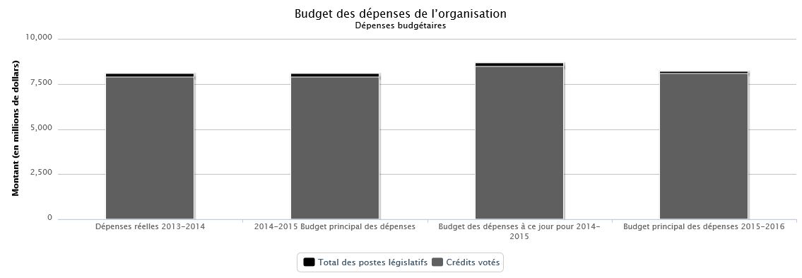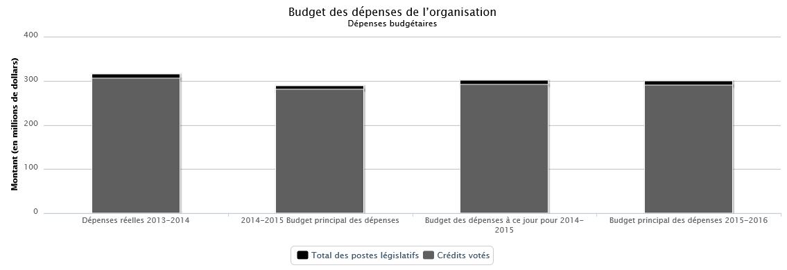 | Dépenses réelles 2013–14 | 2014–15 Budget principal des dépenses | 2014–15 Budget des dépenses à ce jour | Budget principal des dépenses 2015–16 | ||