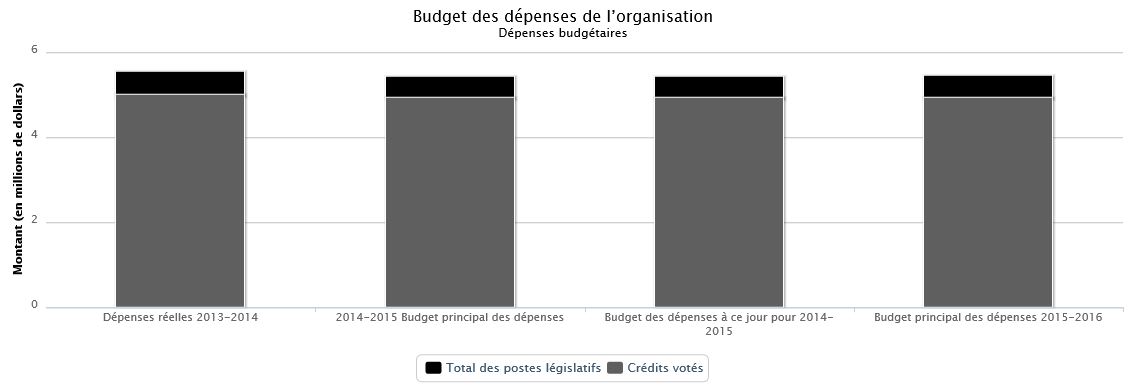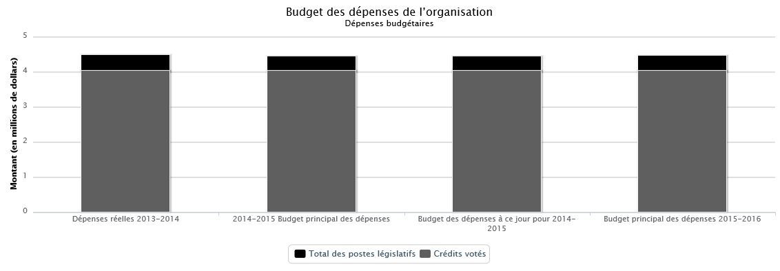 L'APN prévoit des dépenses budgétaires de 751 milliers de dollars pour 2015-2016. De cette somme, un montant de 701 milliers de dollars doit être approuvé par le Parlement. Le solde de 50 milliers de dollars représente les prévisions législatives qui ne nécessitent pas d'approbation supplémentaire; ce montant est fourni à titre indicatif.