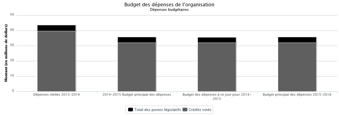 | Dépenses réelles 2013–14 | Budget principal des dépenses 2014–15 | Budget principal des dépenses 2015–16 | |