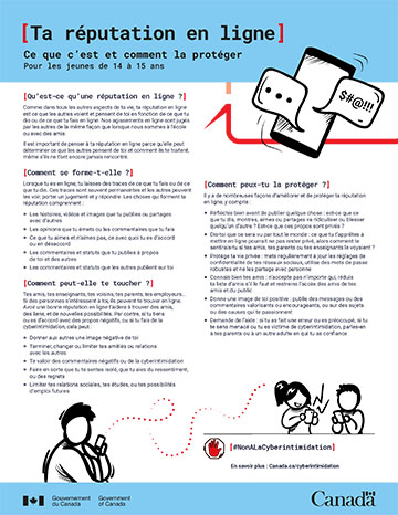 Fiche d’information pour les enfants de 14 à 15 ans sur la réputation en ligne