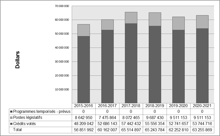 | Budget principal des dépenses 2017–2018 | Dépenses prévues 2017–2018 | Autorisations totales pouvant être utilisées 2017–2018 | Dépenses réelles (autorisations utilisées) 2017–2018 | Écart (dépenses réelles moins dépenses prévues) 2017–2018 | |