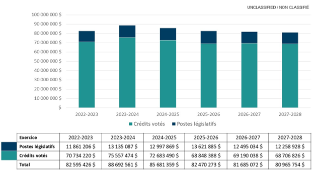 En ce qui a trait au Plan ministériel et au Rapport sur les résultats ministériels, montants présentés dans le Budget principal des dépenses.
