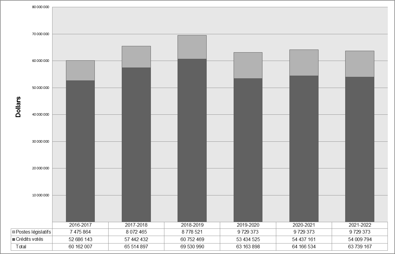| Budget principal des dépenses 2018–2019 | Dépenses prévues 2018–2019 | Autorisations totales pouvant être utilisées 2018–2019 | Dépenses réelles (autorisations utilisées) 2018–2019 | Écart (dépenses réelles moins dépenses prévues) 2018–2019 |
