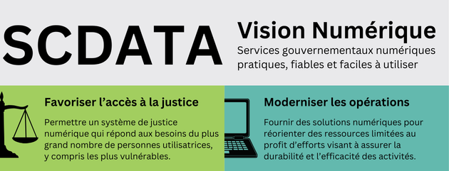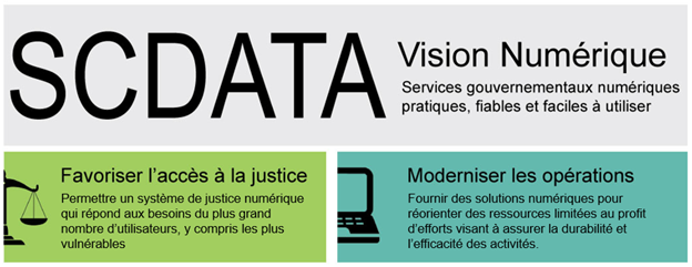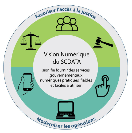 Les nouvelles priorités numériques du SCDATA pour les trois prochaines années continueront à soutenir les deux priorités de l’organisme, à savoir permettre l’accès à la justice et moderniser les activités.