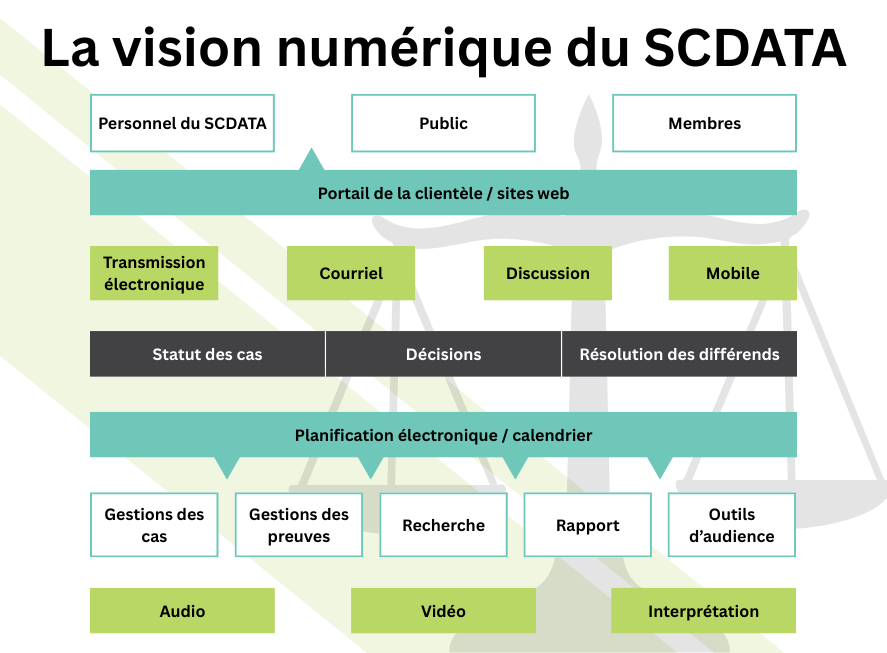 L’une des principales priorités du SCDATA est de travailler en partenariat avec les tribunaux pour concevoir un système de justice numérique plus accessible, plus inclusif et plus efficace répondant aux besoins des acteurs, des intervenants et du public.