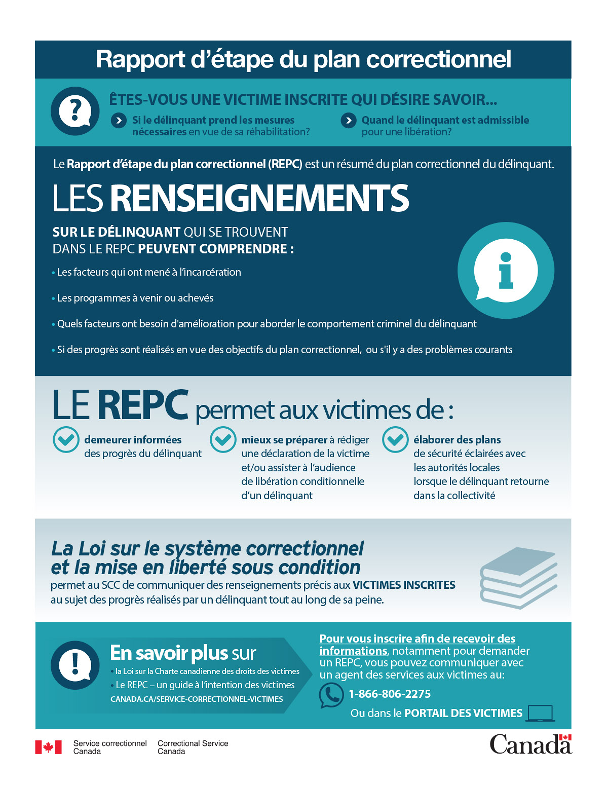 Le Rapport d’étape du plan correctionnel (REPC) est un résumé du plan correctionnel du délinquant.
