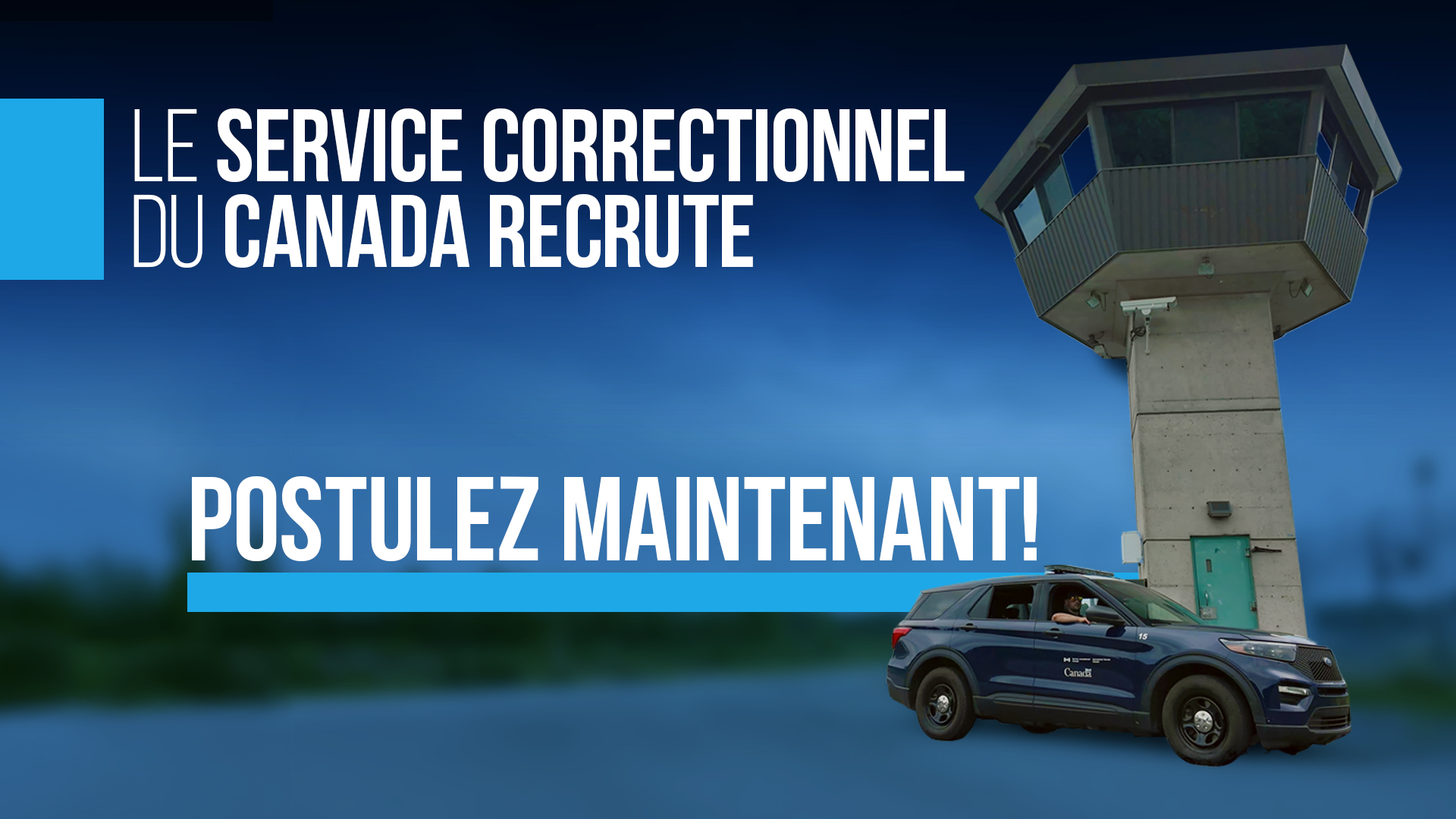 | Carrières d'agent correctionnel au Service correctionnel Canada Publicité vidéo des carrières d’agent correctionnel sur la page Web du Service correctionnel Canada | SCC; sécurité publique, carrières au SCC | |