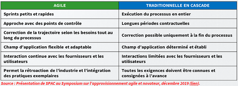Comparaison de SPAC entre l’approvisionnement traditionnel et l’approvisionnement agile: