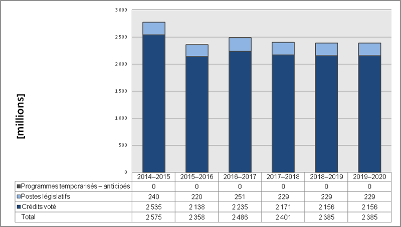Un ministère est censé être au courant des autorisations qu'il a demandées et obtenues. La détermination des dépenses prévues relève du ministère, et ce dernier doit être en mesure de justifier les dépenses et les augmentations présentées dans son Plan ministériel et son Rapport sur les résultats ministériels. - Dépenses votées (voted expenditures)