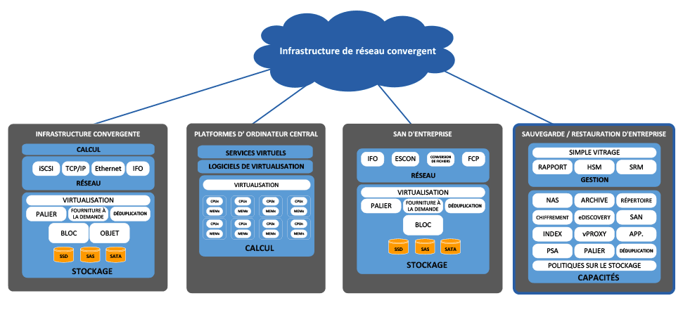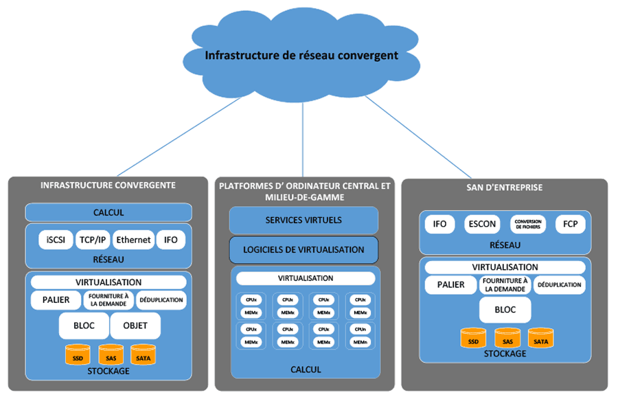 | IC | Infrastructure convergente - Ensemble préconçu de serveurs et de systèmes stockage, de réseautage et de sécurité intégrés dans des banques partagées de ressources inter exploitables, et gérés à l'aide d'une plateforme commune de gestion et d'orchestration. |