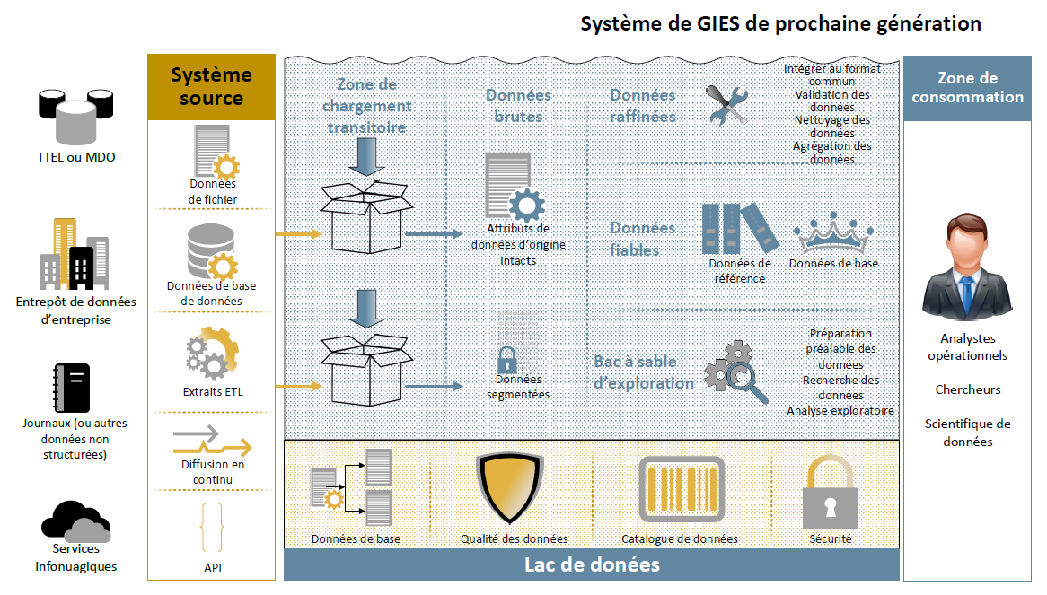 - Possibilité pour l’entreprise d’obtenir et de consolider les données des différents ministères et partenaires afin d’établir une vue d’ensemble pour l’entreprise