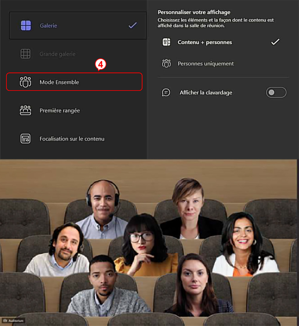 Le mode Ensemble (4) seulement fonctionne que lorsqu'au moins trois personnes ont activé leur caméra.