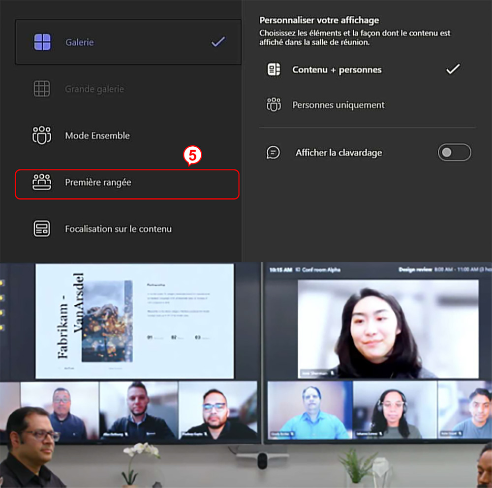 Avec le mode première rangée (5) les participants distants sont vus dans la salle à la hauteur des yeux.