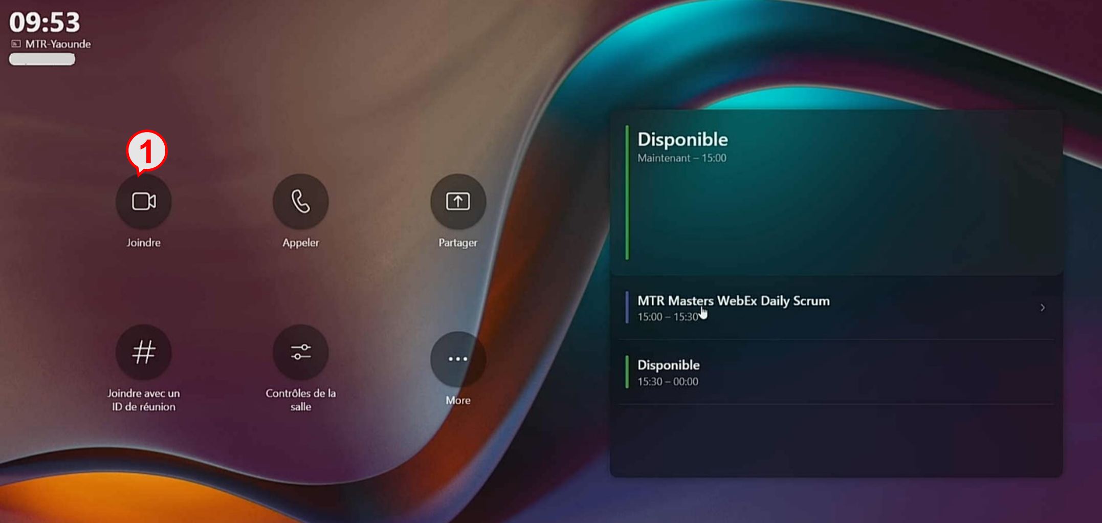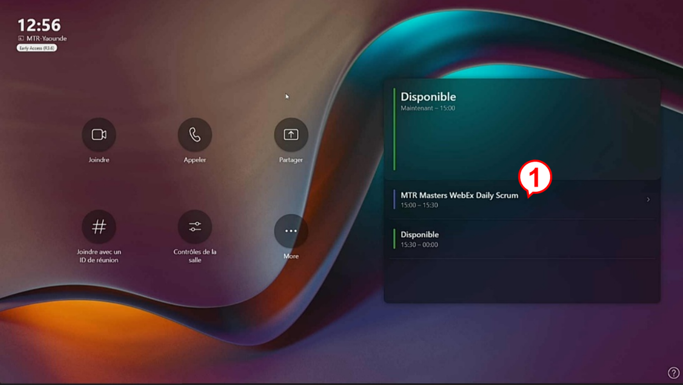 Les réunions Webex s’affichent sur le panneau tactile comme n’importe quelle autre réunion.