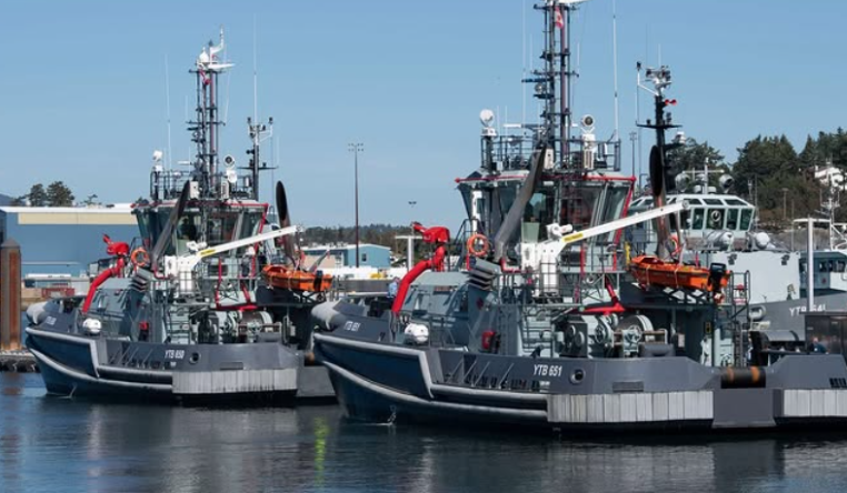 - Les 2 premiers gros remorqueurs navals, le navire auxiliaire des Forces canadiennes (NAFC) Haro et le NAFC Barkerville, ont été livrés à la Marine royale canadienne en août 2024