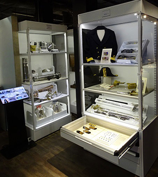 Au cœur de la salle d’exposition du Musée, découvrez les objets parmi les plus représentatifs de la collection. Des bornes informatiques ouvrent la voie à la découverte d’instruments de navigation, de médailles, d’uniformes et de maquettes de navires.