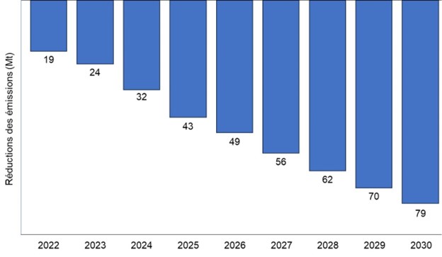 | Année | Réductions des émissions (Mt) |