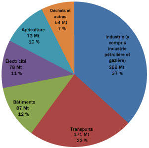 Graphique 1 : Émissions par secteur en 2014 au Canada.