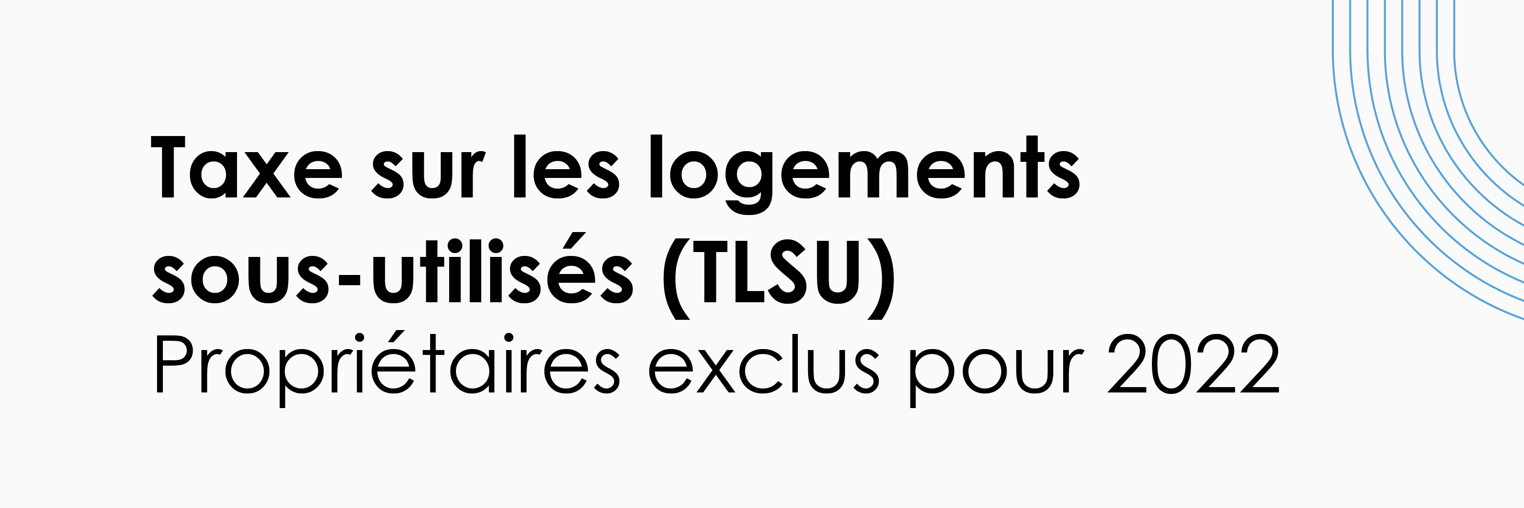 Vous pouvez accéder au matériel promotionnel au sujet de la taxe sur les logements sous-utilisés (TLSU) en formats simples et faciles à suivre. La TLSU est une taxe fédérale annuelle de 1 % qui s’applique aux propriétaires de logements vacants ou sous-utilisés au Canada. Elle est entrée en vigueur le 1er janvier 2022.