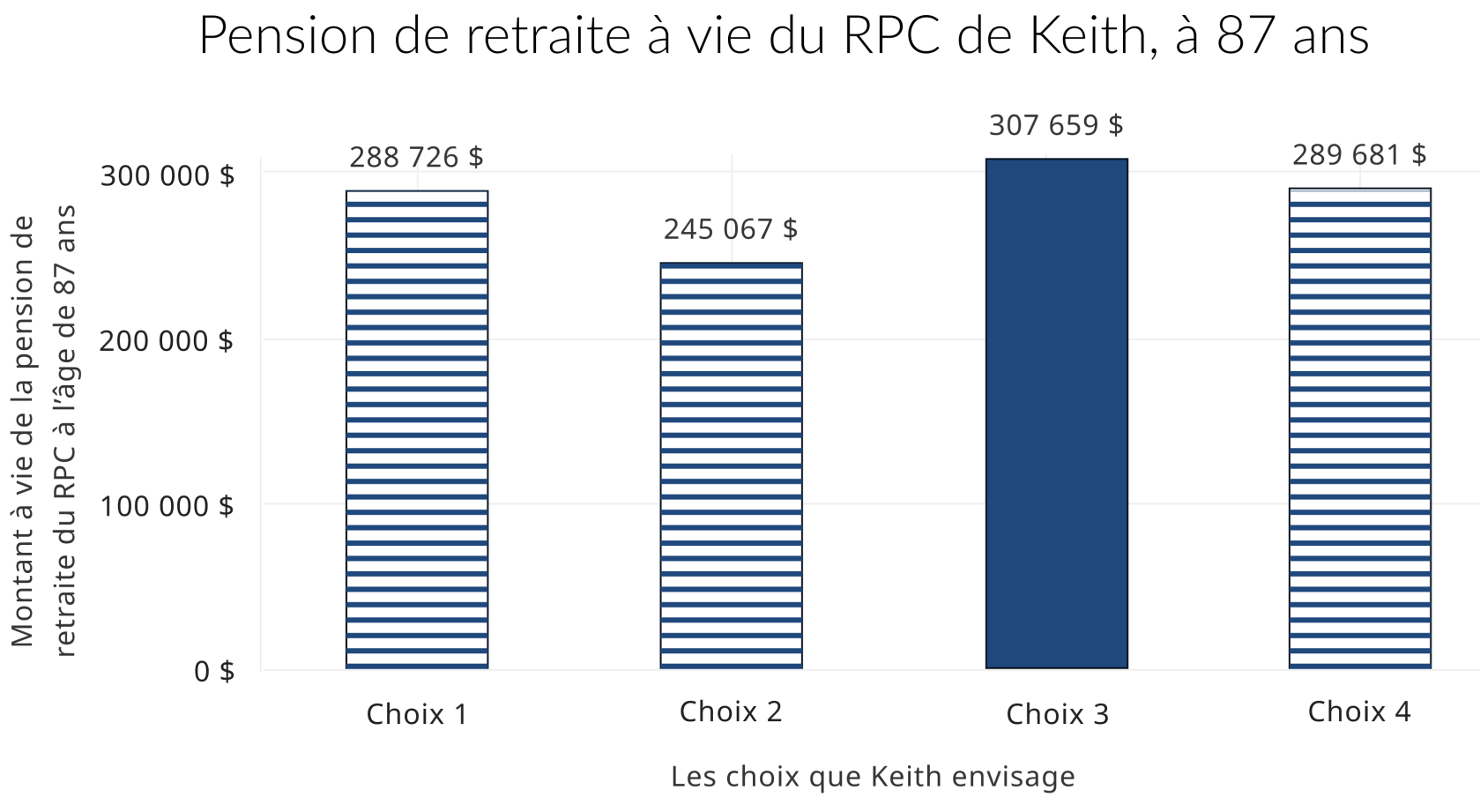 | Les choix que Keith envisage | Montant à vie de la pension de retraite du RPC à l'âge de 87 ans |