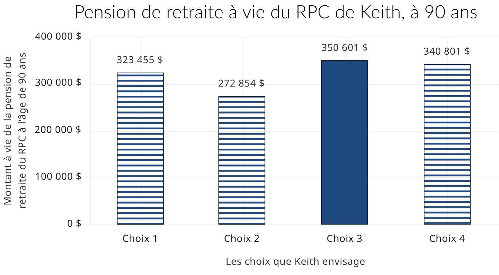 | Les choix que Keith envisage | Montant à vie de la pension de retraite du RPC à l'âge de 90 ans |