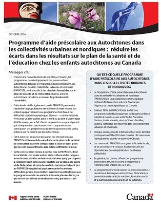 Programme d’aide préscolaire aux Autochtones dans les collectivités urbaines et nordiques : réduire les écarts dans les résultats sur le plan de la santé et de l’éducation chez les enfants autochtones au Canada