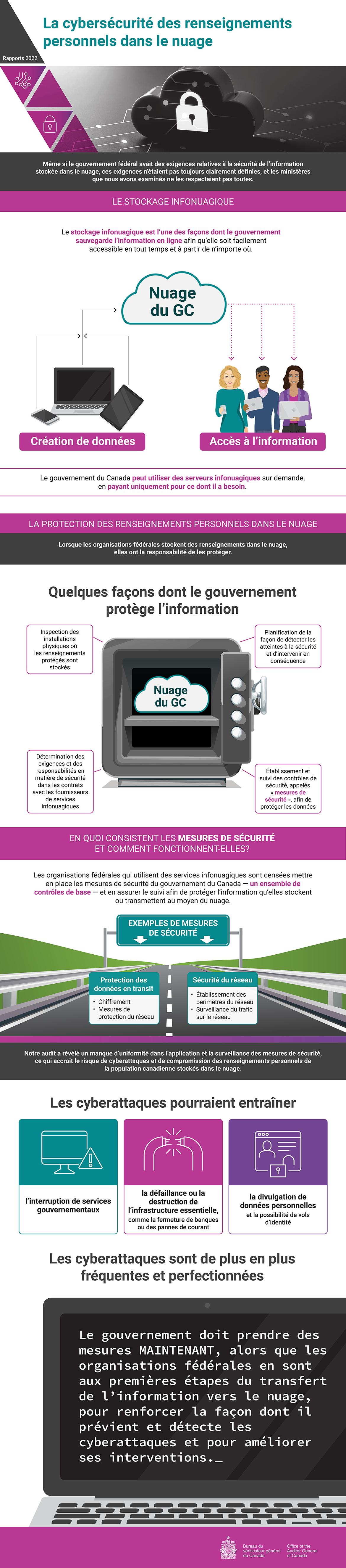Le gouvernement doit prendre des mesures maintenant, alors que les organisations fédérales en sont aux premières étapes du transfert de l’information vers le nuage, pour renforcer la façon dont il prévient et détecte les cyberattaques et pour améliorer ses interventions.