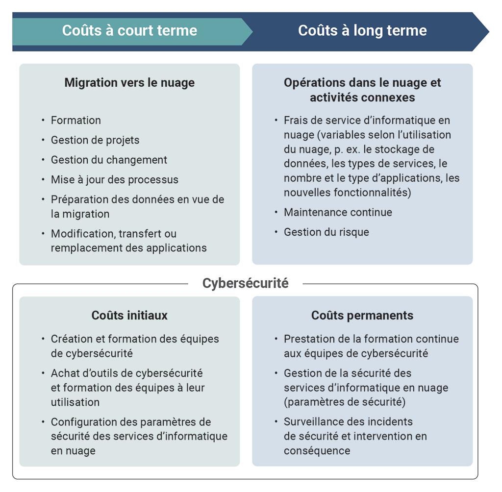 À court terme, la migration de l’information vers le nuage entraîne des coûts associés aux tâches suivantes :