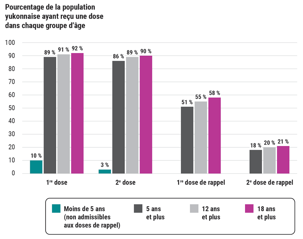• La première dose de rappel a été administrée à 49 % de la population du Yukon et à 50 % de la population du Canada.